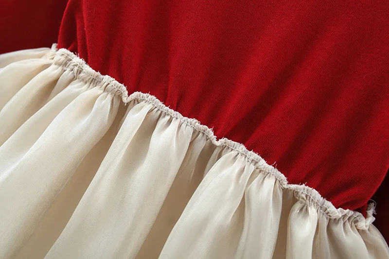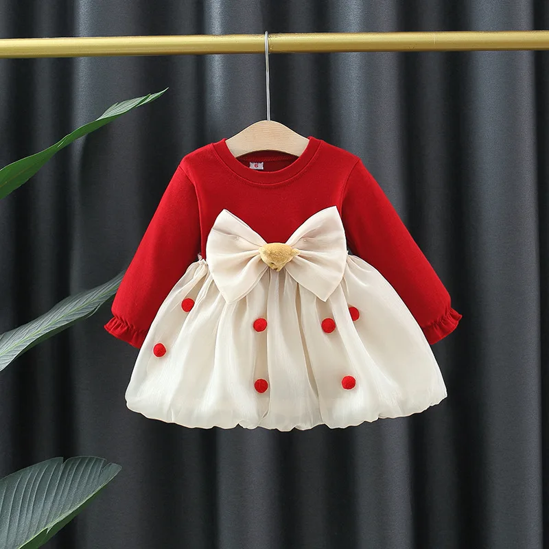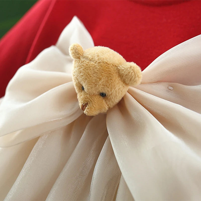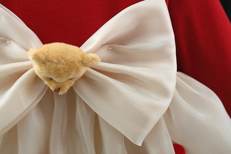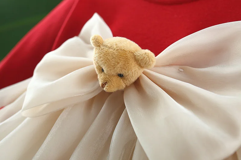 Spring and Autumn New Girl Baby Dress Bow Bear Doll Mesh Dot Puff Dress Sweet Princess Dress Birthday Party Dress