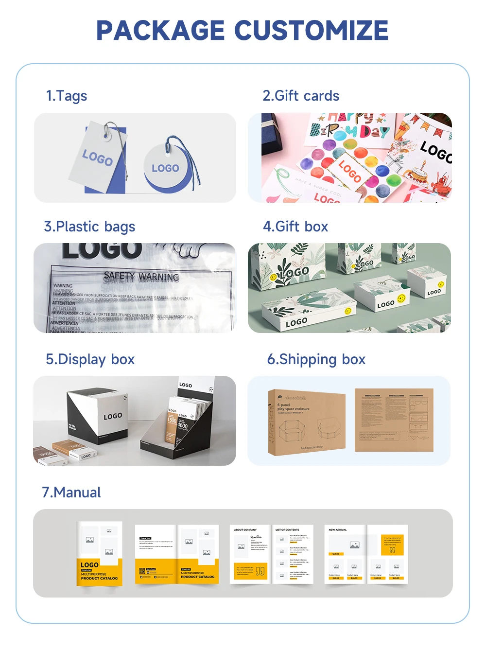 logo, color, size; customized support