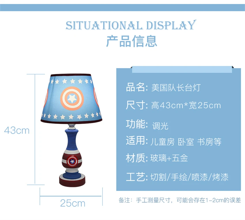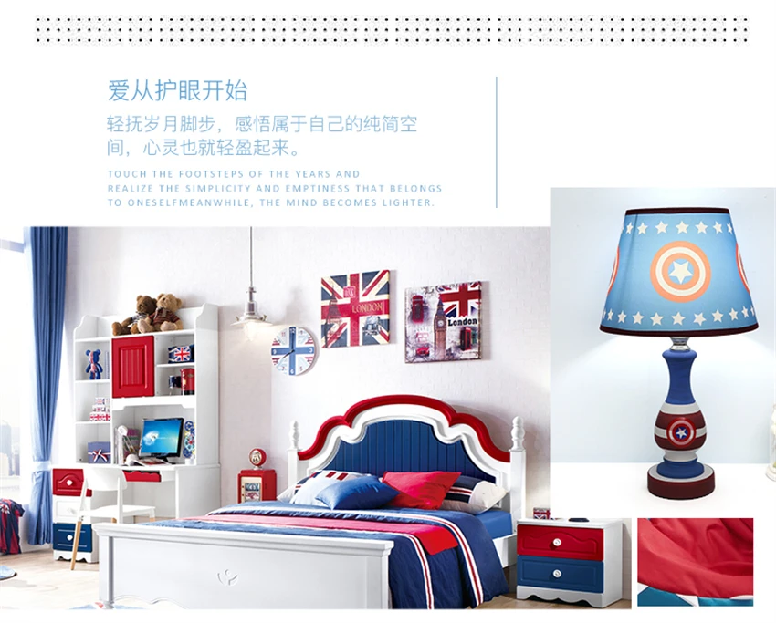 Kids room blue cartoon desk lamps boys' room bedside lamp bedroom decoration LED button switch study table lights fixtures