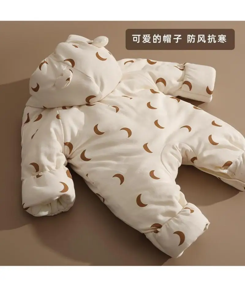 Newborn Winter Suit One-Piece Cotton Padded Jumpsuit with Foot Cover Thick Warm Outfit for Baby 0-12M Layered Clothing Set