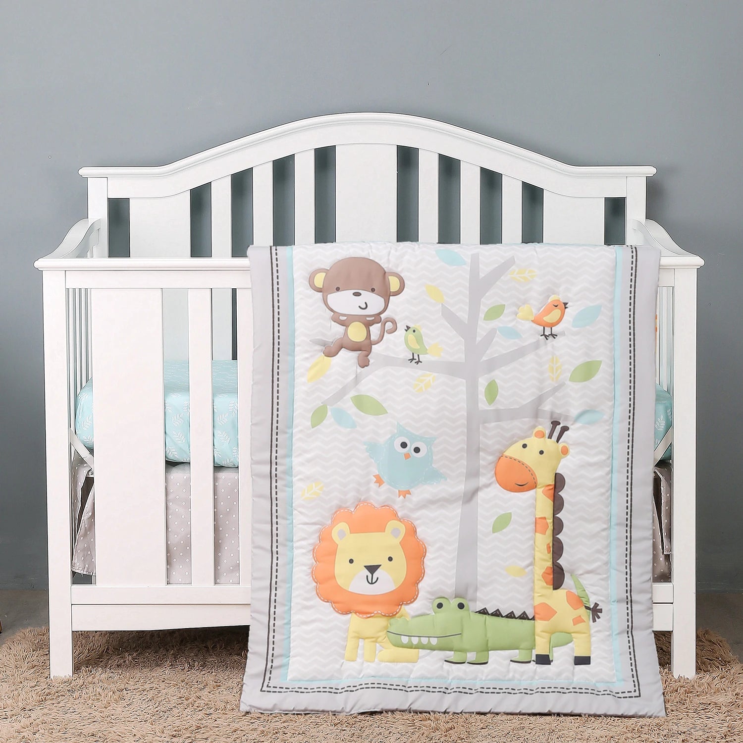 【Excellent Design】Fitted crib sheet with all-around elastic keeps it in place safely and the animal pattern on baby crib bedding set, which make it super easy to decorate baby nursery room and perfect for baby.